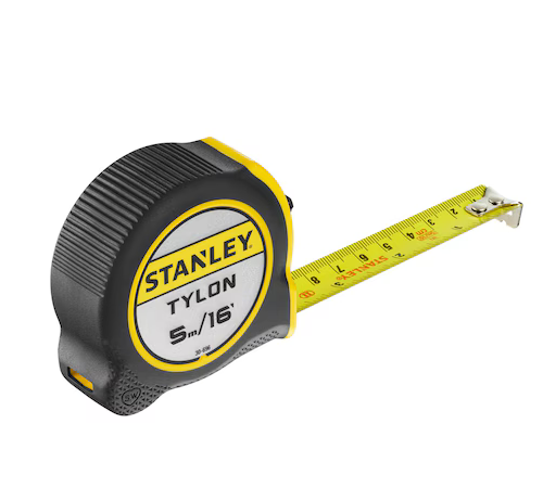 Miara zwijana 5m Stanley Tylon 1-30-696 to narzędzie do pomiaru długości do 5m. Miara Stanley została wykonana z taśmy stalowej polakierowanej i pokrytej powłoką Tylon™zamkniętej w obudowie z tworzywa sztucznego. Miara stalowa Stanley Tylon 1-30-696 posiada blokadę zwijania taśmy, zaczep do paska i zaczep mierniczy zamocowany za pomocą 2 nitów.