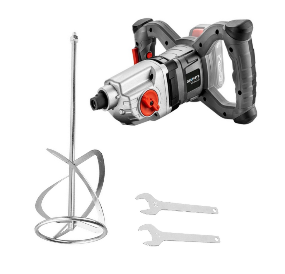 Mieszarka akumulatorowa Graphite 58G084 Energy+ to niezastąpione narzędzie dla profesjonalistów i majsterkowiczów, którzy potrzebują efektywnie mieszać farby, masę gipsową i zaprawy klejowe. Dzięki zastosowaniu akumulatora Li-Ion o napięciu 18V, narzędzie to zapewnia niezależność od źródła zasilania, co pozwala na pracę w różnych miejscach, nawet tam, gdzie prąd elektryczny nie jest dostępny.