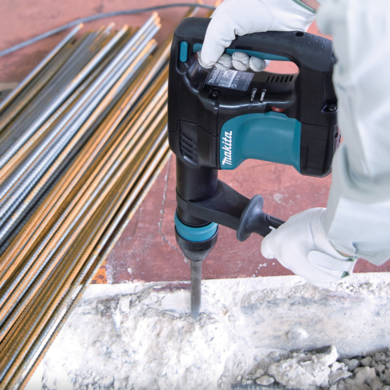 Praca z młotem HM0870C jest komfortowa dzięki możliwości regulacji położenia dłuta kującego w 12 pozycjach. To umożliwia dostosowanie narzędzia do różnych pozycji pracy, co zwiększa wygodę użytkowania. Dodatkowo, miękki start zapewnia płynne i precyzyjne rozpoczęcie pracy, eliminując nagłe szarpnięcia.