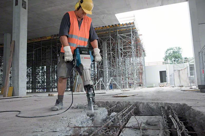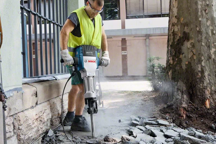 Jednak to nie tylko moc czyni go wyjątkowym. Bosch zadbał również o operatora tego narzędzia. Dzięki zastosowaniu innowacyjnej technologii ograniczającej drgania, młot ten cechuje się bardzo niskim poziomem drgań, wynoszącym jedynie 8,5 m/s2. Jest to kluczowy aspekt w pracy z narzędziami wyburzeniowymi, ponieważ dłuższy czas pracy w ciągu dnia staje się osiągalny bez nadmiernego zmęczenia operatora. Rękojeść została odłączona, aby jeszcze bardziej ograniczyć drgania.
