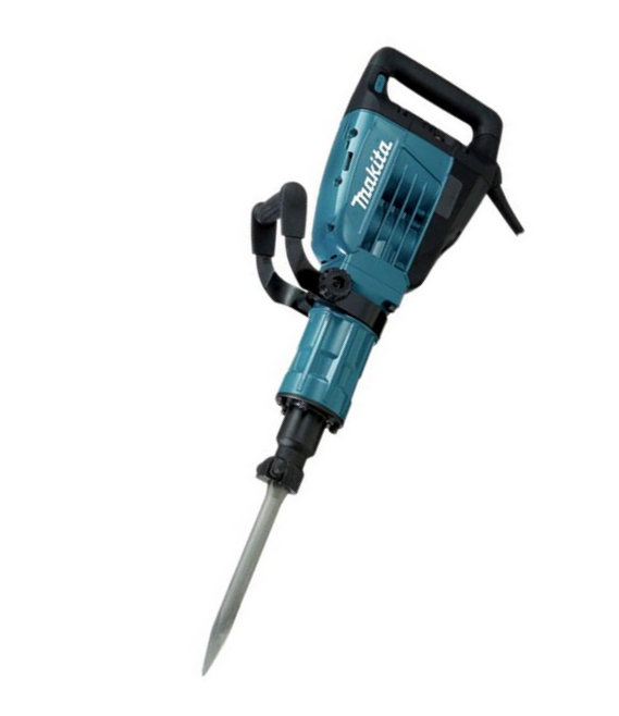 Makita młot wyburzeniowy HM1307C wyposażony jest w uniwersalny uchwyt sześciokątny 30 mm, który umożliwia używanie różnych narzędzi z rowkiem blokującym. Rękojeść dodatkowa obracana jest bezstopniowo o 360°, co znacząco zwiększa komfort i kontrolę podczas pracy.