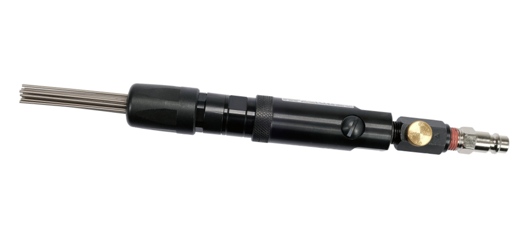 Pneumatyczny młotek igłowy Yato YT-09913 to narzędzie do usuwania rdzy, farby i szlaki spawalniczej z powierzchni metalowych. Młotek Yato YT-09913 posiada niezależny układ stalowych igieł umożliwiający dotarcie do wszelkiego rodzaju zagłębień lub zaniżeń w materiale. Narzędzie wyposażone jest w 13 igieł o średnicy Ø 1,35 mm. Zawór regulacyjny pozwala na dostosowanie częstotliwości uderzeń. Regulowany kierunku wylotu powietrza zwiększa komfort pracy użytkownika. Wykorzystywany w warsztatach motoryzacyjnych, blacharsko-lakierniczych, w zakładach produkcyjnych, a także do majsterkowania.