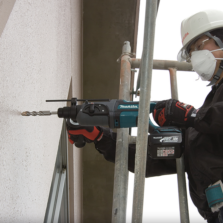Makita młotowiertarka wyposażona jest w uchwyt narzędziowy System SDS-Plus, co ułatwia i przyspiesza wymianę narzędzi. Dodatkowym atutem jest zderzak, który chroni dźwignię trybu pracy oraz obudowę przekładni, co zwiększa trwałość narzędzia.