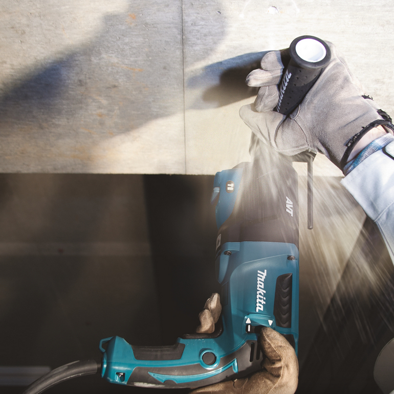 Dodatkowo, młotowiertarka Makita HR2631FT wyposażona jest w wbudowaną diodę LED, oświetlającą miejsce pracy, co zwiększa precyzję i wydajność w warunkach słabego oświetlenia. Prędkość i moment obrotowy są takie same przy obrotach w prawo i w lewo, co dodatkowo ułatwia i przyspiesza pracę, a przełącznik na uchwycie szczotek węglowych gwarantuje stabilność i niezawodność narzędzia.