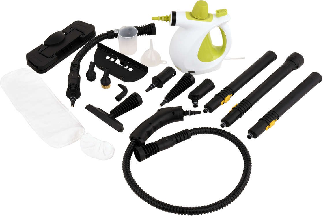 Myjka parowa LUND 67201 z zestawem wymiennych końcówek ułatwiających skuteczne i szybkie czyszczenie różnego rodzaju powierzchni i obiektów: dywanów, paneli, laminatów, glazury, fug, armatury, umywalek, luster, okien, kuchenek, piekarników, grilli, lodówek, tkanin, zabawek itp. Wysoka moc urządzenia oraz ilość wyrzucanej pary 28g/min zapewnią efektywną pracę