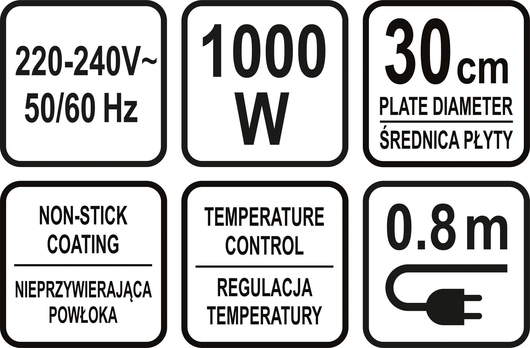 Naleśnikarka z nieprzywierającą płytą grzewczą o średnicy 30cm. Umożliwia przygotowanie równo wysmażonych naleśników i placków bez użycia tłuszczu.
