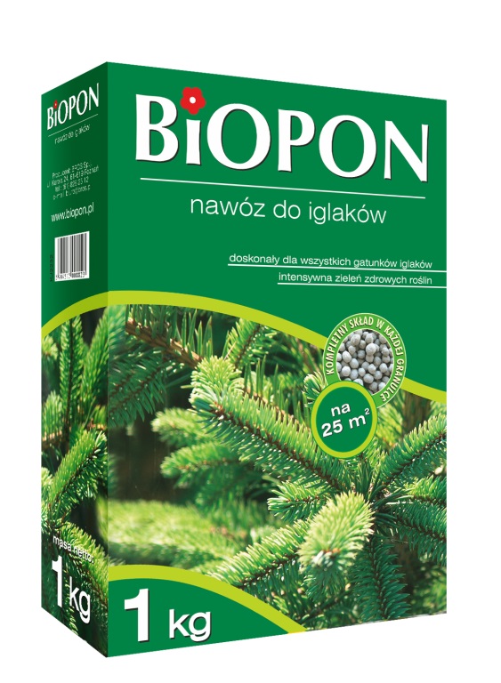 BIOPON do iglaków zawiera wszystkie składniki niezbędne do utrzymania właściwego poziomu kwasowości gleby.