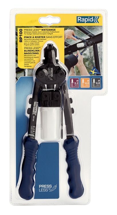 Precyzyjna, profesjonalna nitownica wyposażona w mechanizm Press Less redukujący potrzebną siłę nacisku.