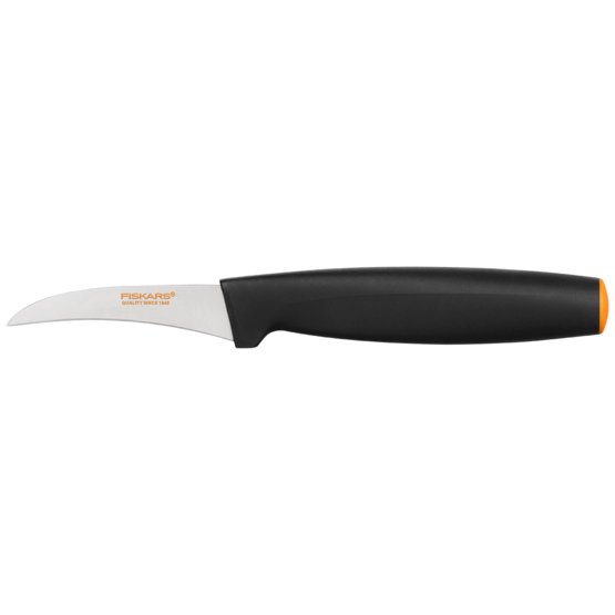 Niewielki nóż z zagiętym ostrzem, idealny do skrobania i krojenia drobnych warzyw lub owoców.