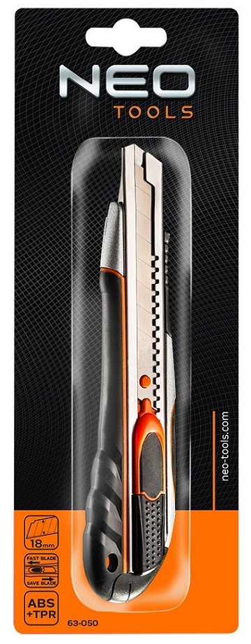 Nóż z ostrzem łamanym NEO (nr ref. 63-050) wyposażony w funkcję szybkiego cięcia wraz z suwakiem blokującym ułatwiają pracę narzędziem. Metalowe prowadnice oraz obudowa ze stopu cynku zapewniają długą żywotność produktu. Dwumateriałowy uchwyt zapewnia bezpieczeństwo i komfort podczas pracy. Marka NEO spełnia oczekiwania profesjonalistów.