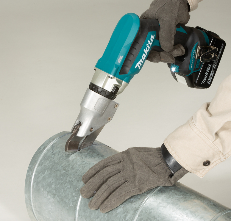 Kompaktowa i lekka konstrukcja nożyc umożliwia łatwe użytkowanie oraz duże możliwości manewru. Akumulatorowe nożyce do blachy Makita DJS131Z oferują różnorodność cięć, obejmując zarówno proste, jak i zakrzywione cięcia, a także cięcia blachy falistej. Krawędź tnąca ostrza przesunięta względem osi środkowej dodatkowo podnosi precyzję wykonania cięć.