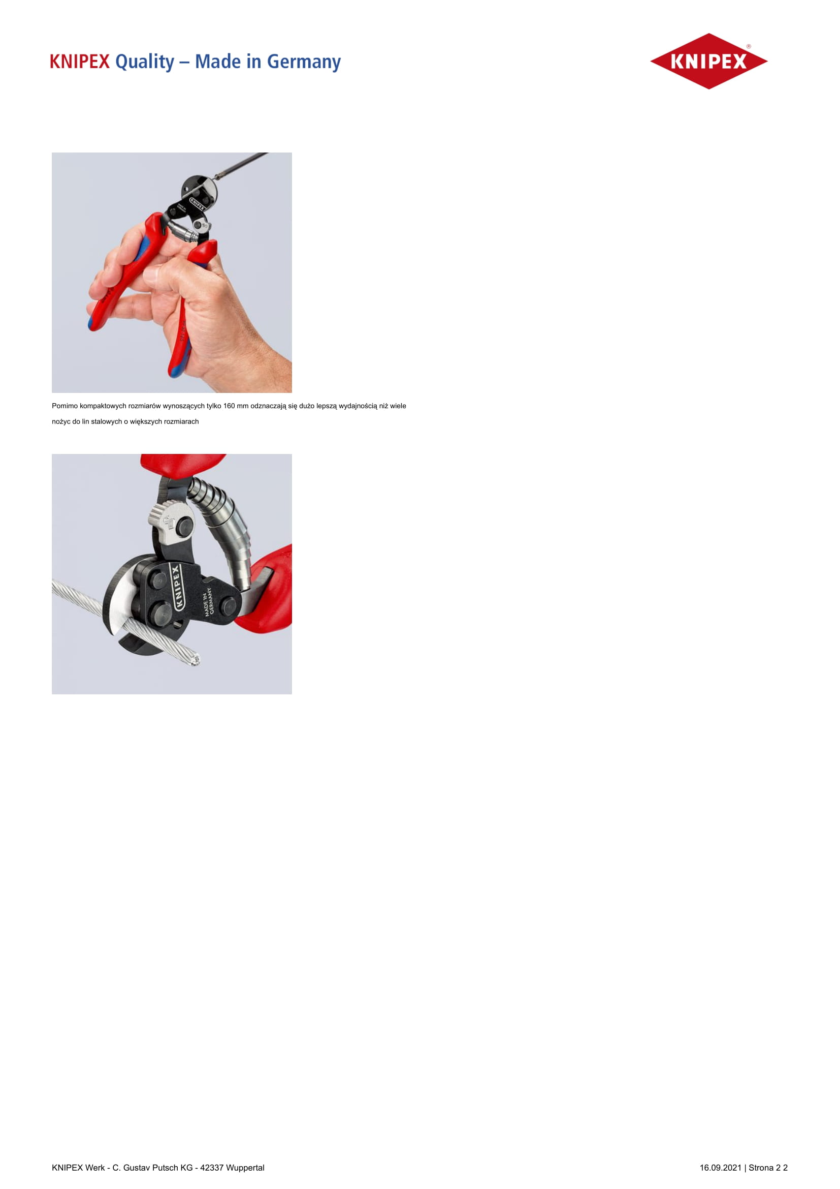 Nawet o 30% mniejszy nakład siły w porównaniu z nożycami do lin stalowych o takiej samej długości