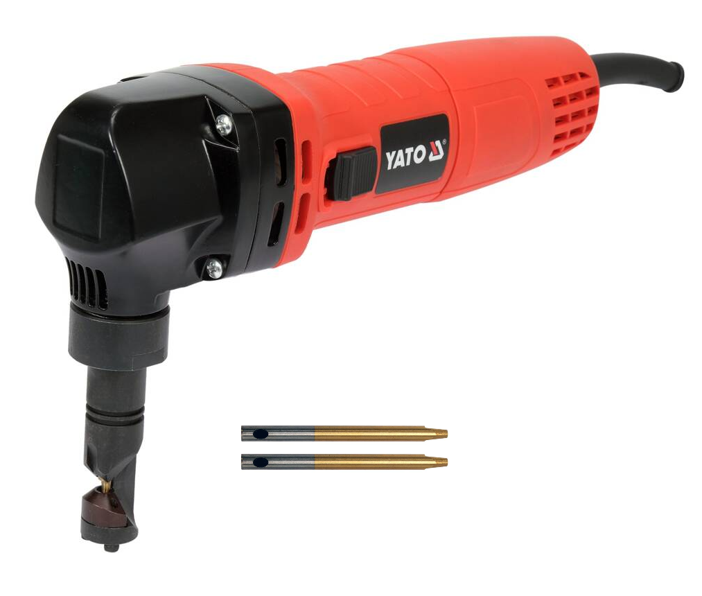Yato elektryczne nożyce YT-82395 wyposażone są w ostrza matrycowe, które nie tylko skutecznie ciętej materiał nie klinują się w nim i nie szarpną, co ułatwia precyzyjne cięcie wzdłuż wyznaczonych linii. Dodatkowo, brzegi ciętego materiału pozostają nietknięte, nie ulegają uszkodzeniom ani zgięciom, a także są odporne na korozję, co przyczynia się do zachowania trwałości powłok antykorozyjnych.