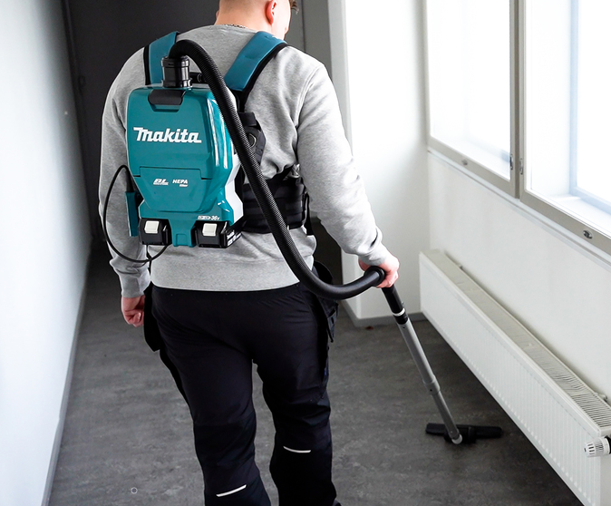 Odkurzacz plecakowy akumulatorowy Makita DVC261ZX11 to wydajne narzędzie zasilane przez dwie baterie Li-ion 18V dostarczające energię układowi napędowemu silnika 36V DC. Dzięki bezszczotkowemu silnikowi prądu stałego o mocy 90 W oraz 3-stopniowej, elektronicznej regulacji mocy zasysania oferuje doskonałą wydajność i elastyczność. Komfortowe szelki i uprząż sprawiają, że noszenie odkurzacza plecakowego jest łatwe i ergonomiczne, umożliwiając pracę bez zbędnego zmęczenia. Makita odkurzacz plecakowy DVC261ZX11 wyposażony w filtr HEPA, zapewniający czyste i zdrowe powietrze w miejscu pracy. Funkcja pamięci trybu pozwala na automatyczne włączanie urządzenia z tymi samymi ustawieniami mocy ssania, co w momencie wyłączenia. Aluminiowa teleskopowa rura prosta umożliwia dostosowanie długości do konkretnego zastosowania oraz do wzrostu użytkownika. Dodatkowo, dioda LED zainstalowana w odkurzaczu poprawia komfort pracy w miejscach o słabym oświetleniu. Odkurzacz plecakowy Makita DVC261ZX11 to niezawodne narzędzie, które łączy wydajność, komfort użytkowania i nowoczesne rozwiązania technologiczne.
