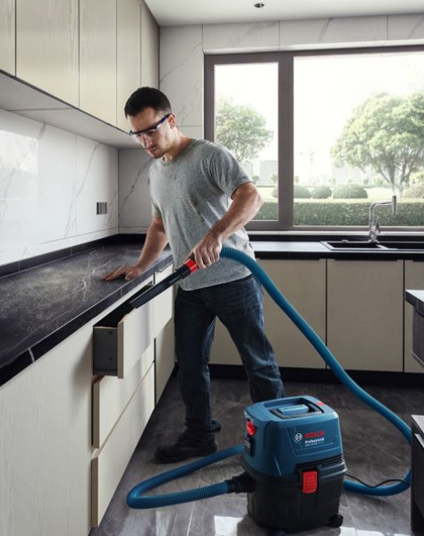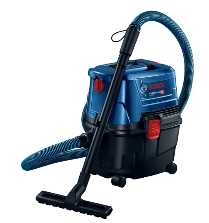 Odkurzacz przemysłowy Bosch GAS 15 06019E5000 to profesjonalne narzędzie do prac porządkowych w garażu, warsztacie, przy remontach, które pracuje zarówno na sucho jak i na mokro.