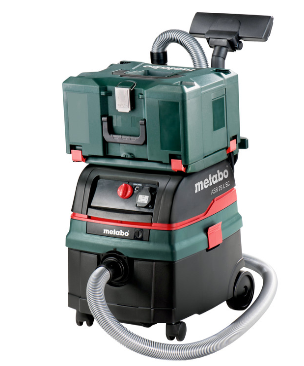 Metabo odkurzacz ASR 25 L SC posiada dodatkowe udogodnienia takie jak: schowek na osprzęt i półkę na akcesoria, a system przechowywania i transportu, czyli połączenie walizki MetaLoc oraz odkurzacza za pomocą systemu Metadepot, ułatwiają utrzymanie porządku na stanowisku pracy.