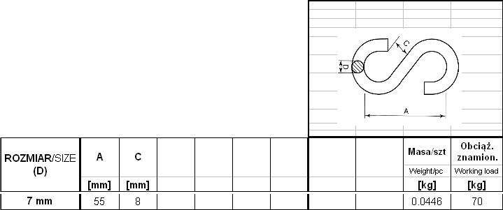 hak ocynkowany FI 7.0mm , długość ok. 69mm , obciążenie znamionowe 70kg , zastosowanie : do łączenia odcinków łańcucha