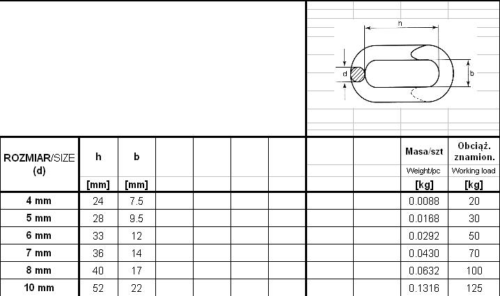 Ocynkowane elektronicznie , zastosowanie :do łączenia odcinków łańcucha , łączenie trwałe - po zaklepaniu nie powinno się odginać ogniwa celem ponownego użycia