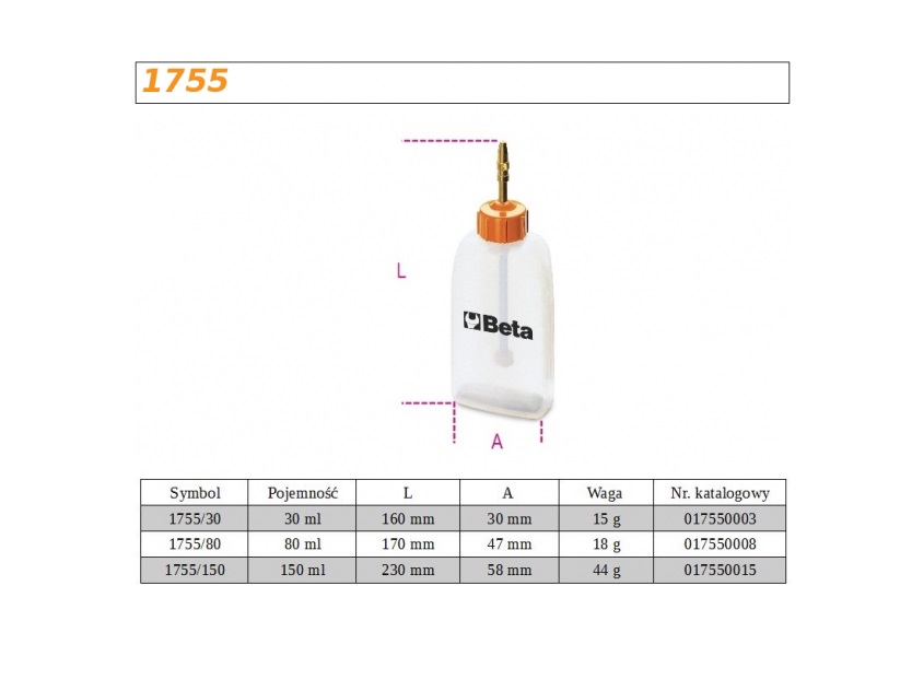 Olejarki butelkowe z tworzywa sztucznego z rurką metalową wysuwaną Beta 1755