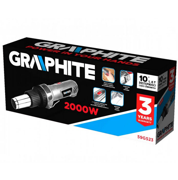 Opalarka elektryczna Graphite 59G523 to nie tylko narzędzie o wysokiej wydajności, ale także o trwałej i solidnej konstrukcji, co sprawia, że doskonale sprawdza się w zastosowaniach przemysłowych i profesjonalnych, zarówno wewnątrz, jak i na zewnątrz pomieszczeń.