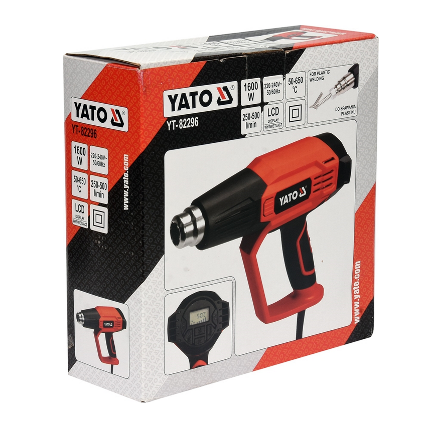 Opalarka Yato YT-82296 to profesjonalne narzędzie o mocy 1600 W, które zapewnia wszechstronne zastosowanie dzięki dwóm biegom, funkcji spawania i nowoczesnemu wyświetlaczowi LCD.