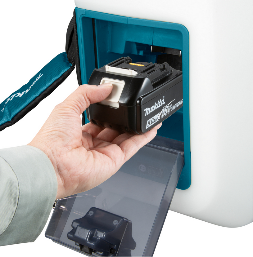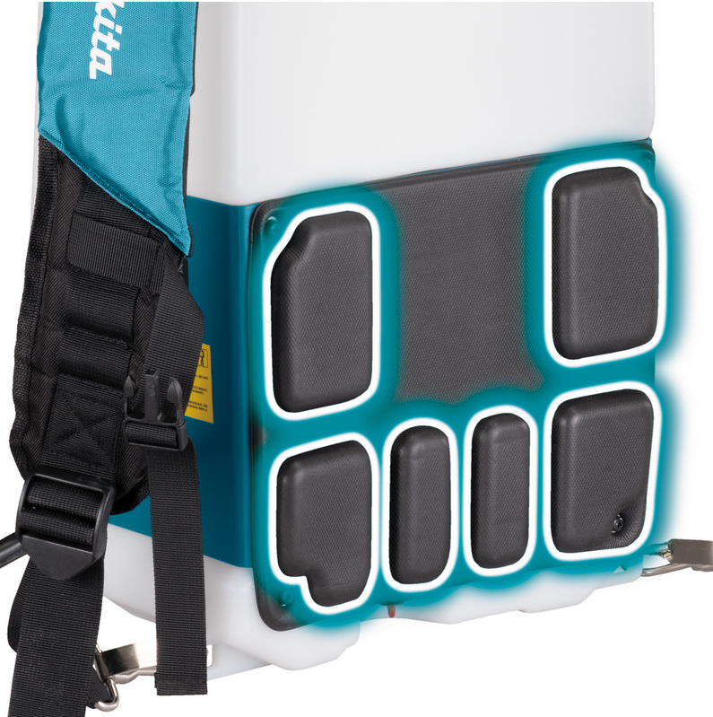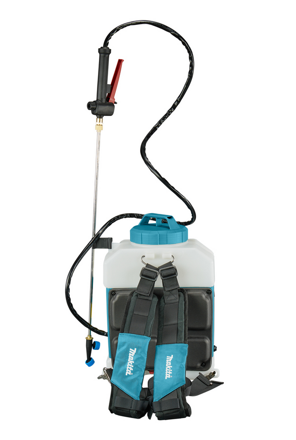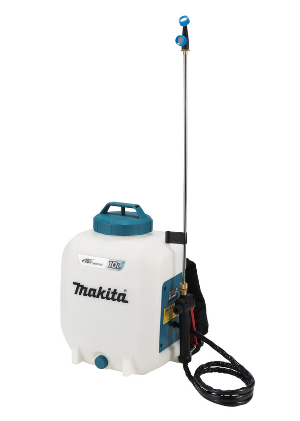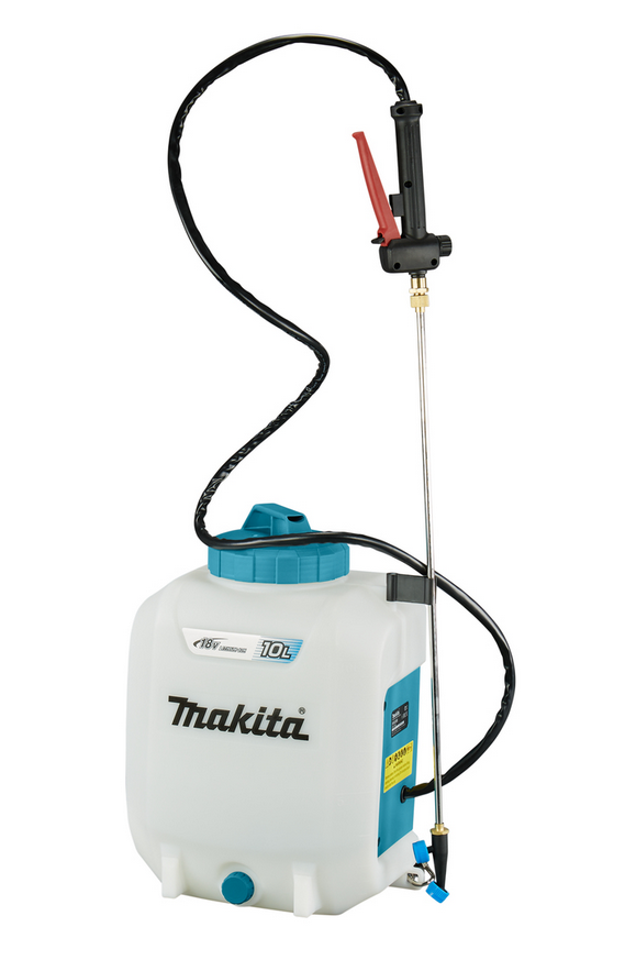 Akumulatorowy opryskiwacz plecakowy Makita DUS108Z to urządzenie do opryskiwania i nawadniania drzew, krzewów i roślin chroniąc je przed chorobami i szkodnikami. Urządzenie zasilane jest akumulatorem 18 V Li-ion. Niewielka waga i kompaktowa budowa pozwala na wygodne noszenia na plecach nie powodując nadmiernego zmęczenia i konieczności schylania się. Posiada zbiornik o pojemności 10 litrów oraz długi wąż zasilający lancę, pozwala na oprysk znacznego obszaru, bez konieczności częstego uzupełniania.  Opryskiwacz Makita DUS108Z posiada pompę membranową oraz podwójną dyszę w kształcie litery I, z szerokim kątem oprysku.