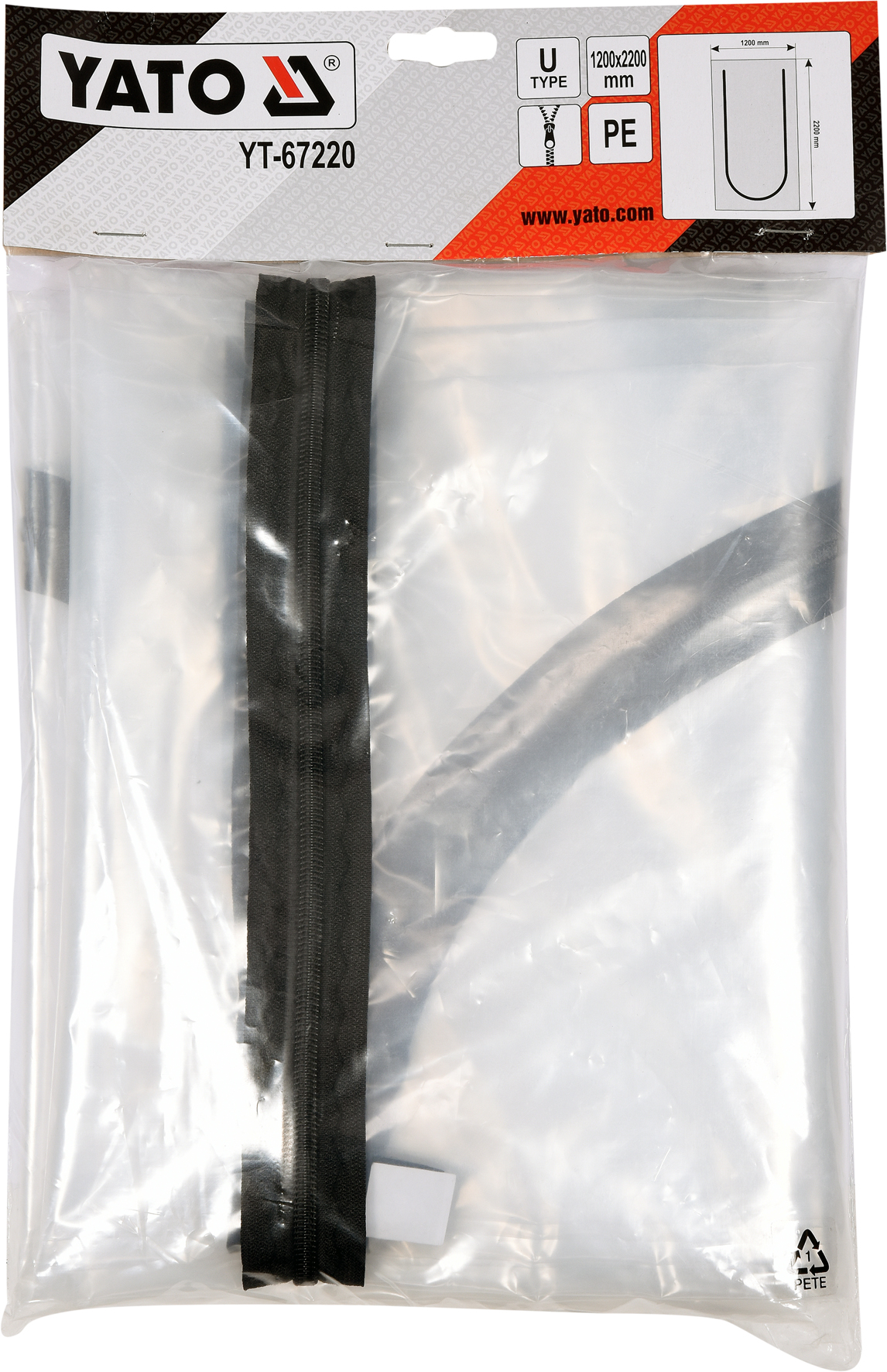 - Osłona przeciwpyłowa otworów drzwiowych wykonana z grubej, bezbarwnej, przezroczystej folii PE. Część otwierana ma kształt litery U i otwierana jest wszytym zamkiem błyskawicznym z pojedynczym suwakiem. Mocowanie folii odbywa się za pomocą taśmy klejącej.