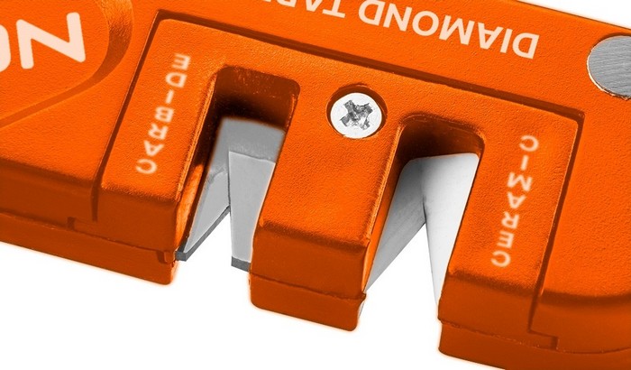 Ostrzałka do noży, kieszonkowa 56-054 marki NEO to narzędzie posiadające obudowę z odpornego na uderzenia tworzywa ABC, częściowo pokrytego gumą TPR. Oferuje dwustopniowe ostrzenie noży – wstępne nadające kształt za pomocą węglika wolframu oraz ostateczne polerujące ceramiczne.