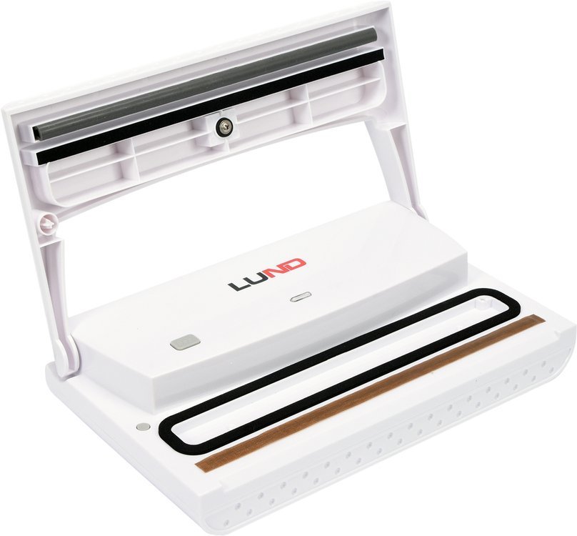 Pakowarka próżniowa do żywności marki LUND, o mocy 140 W - w pełni automatyczne urządzenie do pakowania próżniowego - prosta i wygodna obsługa - maksymalna szerokość folii 22 cm, długość według potrzeb - stabilna praca dzięki gumowanym nóżkom - włącznik bezpieczeństwa - przycisk zgrzewania "Seal" - instrukcja obsługi w języku polskim Do pakowarki pasują worki moletowane do pakowania próżniowego żywności: - indeks 67887 o wymiarach 20x30 cm (50 szt w opakowaniu)