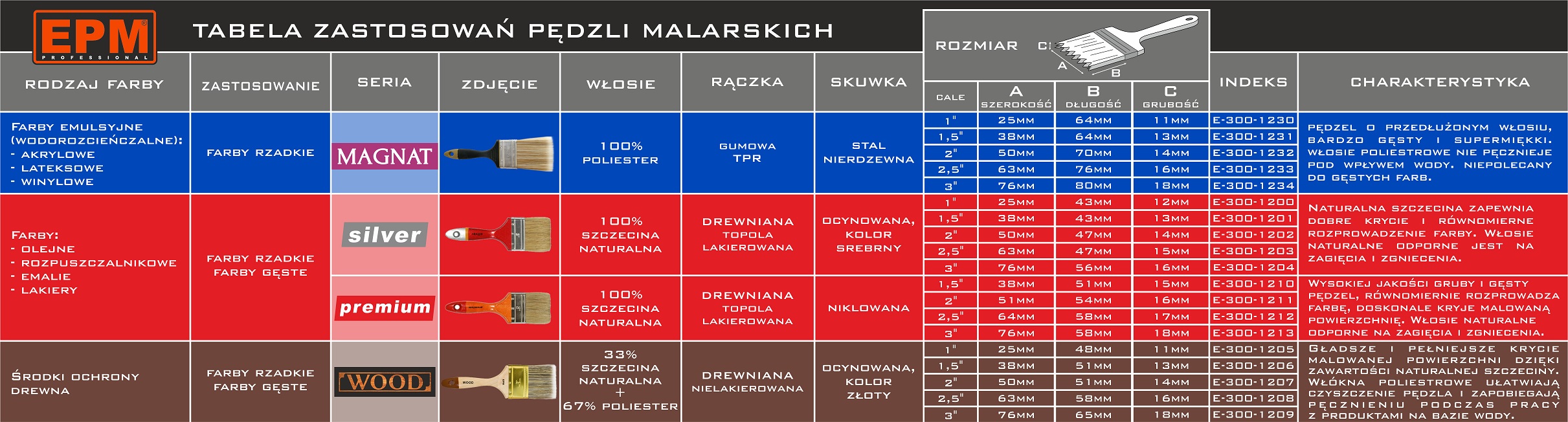 - pędzel kaloryferowy do malowania farbami, lakierami i emulsjami,