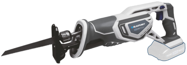 Piła szablasta akumulatorowa Blaupunkt DNA System 18V Li-Ion. Przeznaczona do cięcia drewna, metalu oraz innych tworzyw.