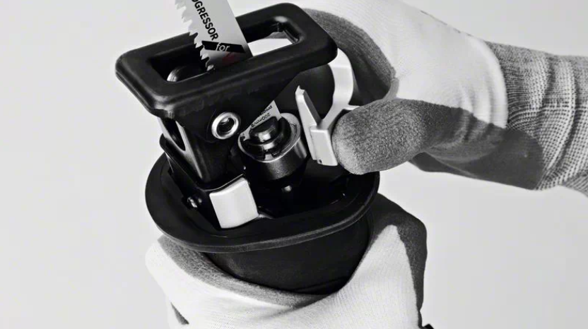 Ergonomiczna rękojeść w połączeniu z systemem Vibration Control poprawia komfort pracy, redukując wibracje i umożliwiając precyzyjne prowadzenie piły. System SDS to innowacyjne rozwiązanie, które umożliwia łatwą, bezpieczną i beznarzędziową wymianę brzeszczotów, nawet w rękawicach, co znacznie przyspiesza proces pracy.