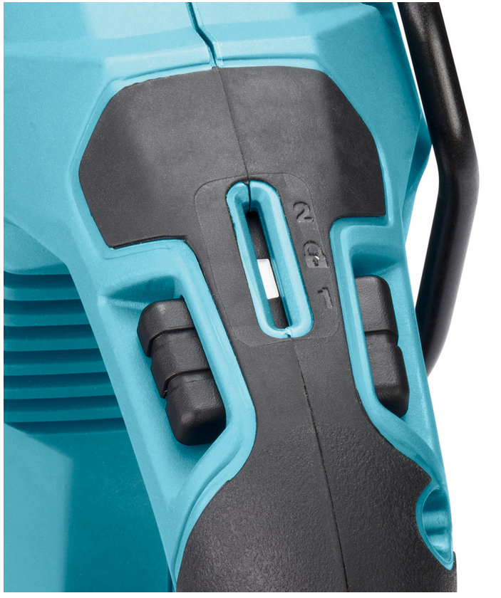 Makita piła szablasta JR001GZ umożliwia precyzyjną kontrolę częstotliwości skoków za pomocą spustu włącznika, co pozwala dostosować narzędzie do różnych rodzajów materiałów. 2-biegowa elektroniczna kontrola częstotliwości skoków dodatkowo zwiększa elastyczność podczas cięcia.