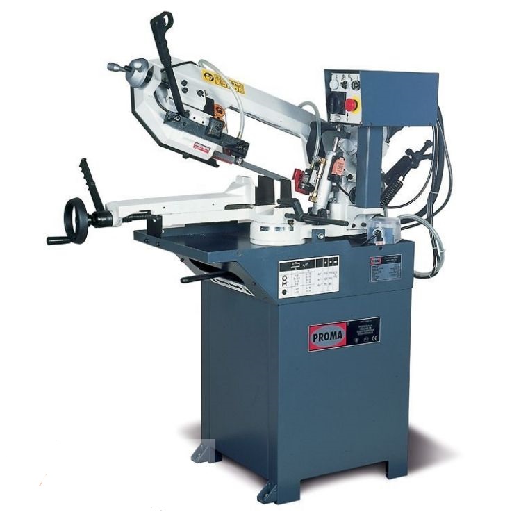 Napęd taśmy tnącej (dwie prędkości cięcia) jest zapewniany przez silnik 2-biegunowy z motoreduktorem