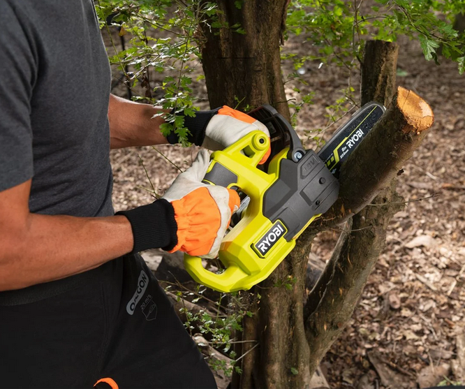Akumulatorowa pilarka łańcuchowa RY18CS20A-0 Ryobi 5133005414 to mini elektronarzędzie do cięcia lub przycinania drewna. Piła RY18CS20A-0 zasilana jest akumulatorem o napięciu 18V, co pozwoli na stabilne i wydajne cięcie drewna na opał, desek czy okrzesywania z gałęzi ściętego drzewa. Prowadnica pilarki  RY18CS20A-0 Ryobi ma długość 20 cm i większą ilość zębów, co umożliwia płynniejsze cięcie, niższe wibracje oraz zmniejsza odrzut. Przydatnym elementem Ryobi RY18CS20A-0 jest wbudowany schowek na narzędzia, gdzie niezbędne narzędzia są zawsze pod ręką.