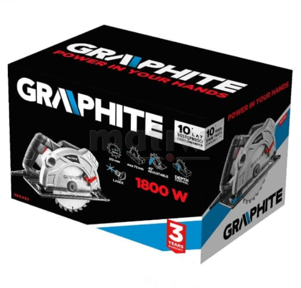 Pilarka tarczowa Graphite 58G493 to zaawansowane narzędzie, które charakteryzuje się silnikiem o imponującej mocy 1800W, umożliwiającym pracę z prędkością do 5000 obrotów na minutę. Dzięki tej wydajności narzędzie doskonale sprawdza się w różnorodnych zastosowaniach, umożliwiając skuteczne cięcia w różnych materiałach.