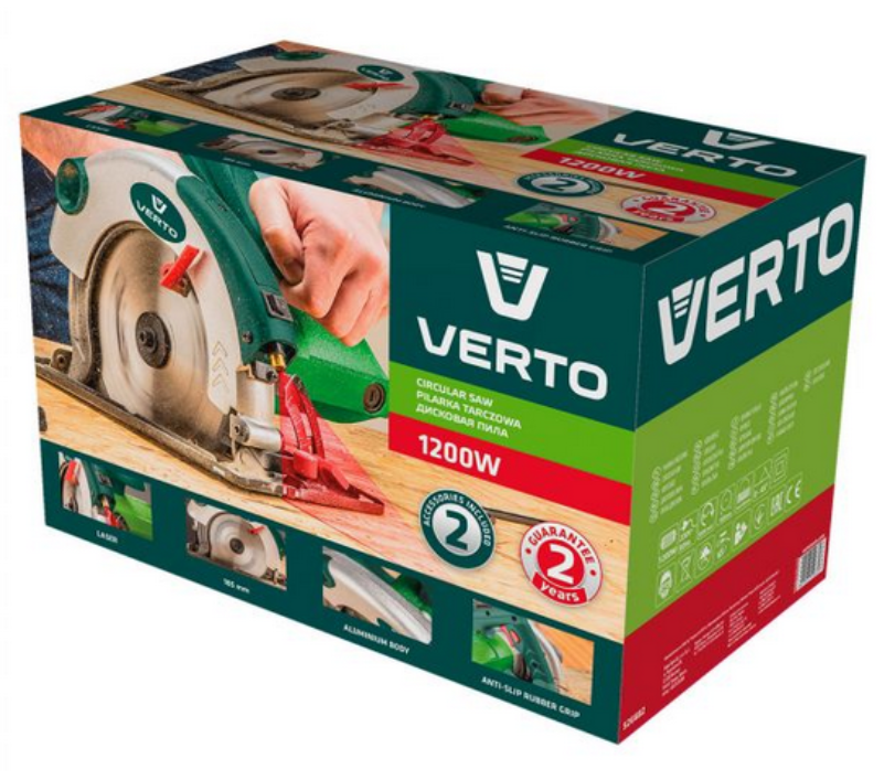 Pilarka tarczowa Verto 52G684 to efektywne narzędzie, idealne do precyzyjnych cięć w różnorodnych materiałach, takich jak drewno czy płyty wiórowe. Z wyposażeniem w wskaźnik laserowy, narzędzie to zapewnia dokładność i łatwość prowadzenia podczas cięcia. Silnik o mocy 1200W gwarantuje wystarczającą moc do skutecznego przecinania różnych materiałów. Pilarka umożliwia regulację głębokości i kąta cięcia w zakresie od 0° do 45°, co zwiększa jej wszechstronność i dostosowanie do różnych zadań. Wskaźnik laserowy to praktyczne rozwiązanie, które ułatwia precyzyjne prowadzenie pilarki i zwiększa precyzję cięcia. W zestawie z pilarką dostarczana jest prowadnica równoległa, co pozwala na precyzyjne prowadzenie narzędzia wzdłuż krawędzi materiału, zapewniając powtarzalność cięć.