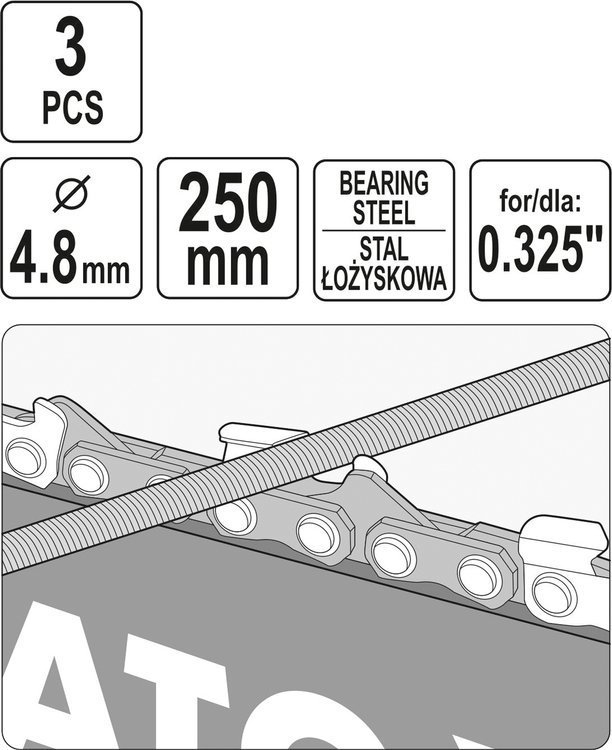 Zestawy 3 pilników okrągłych służących do ostrzenia łańcuchów tnących pilarek.