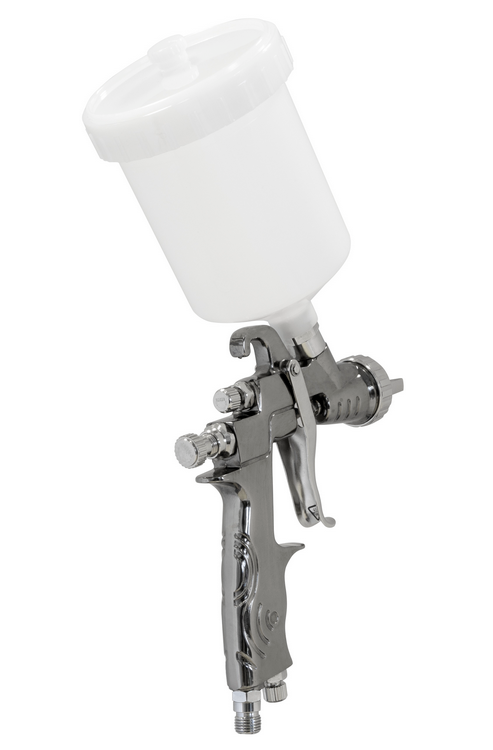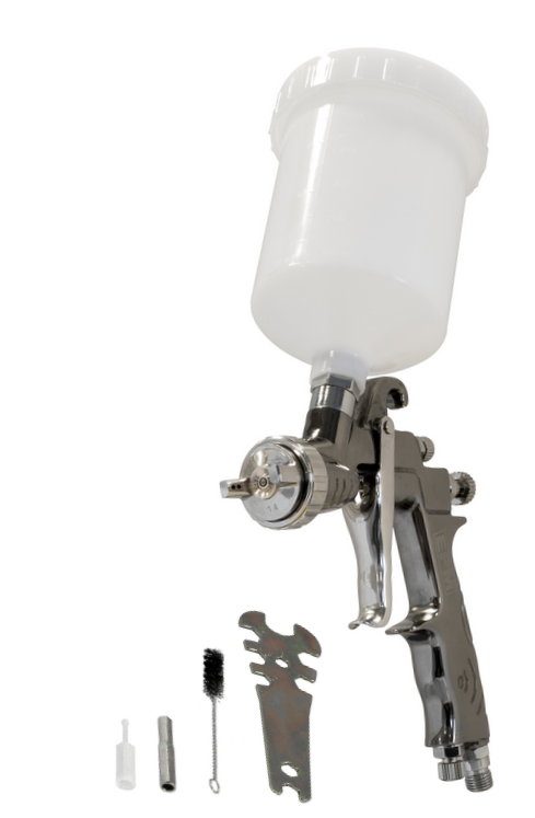 Pistolet lakierniczy EPM E-490-0203 HVLP ze zbiornikiem do narzędzie do wydajnego lakierowania. Pistolet natryskowy EPM E-490-0203 wykonany w technologii HVLP, która charakteryzuje się wysokim przepływem powietrza przy niskim jego ciśnieniu. Technologia HVLP pozwala na redukcję generowanej mgiełki lakierniczej, co zwiększa efektywność transferu (krycia) powierzchni aplikowaną farbą i ogranicza emisję lotnych związków. Pistolet do lakierowania EPM E-490-0203 został wyposażony w zbiornik o pojemności 600ml i dyszę o średnicy 1,4 mm.