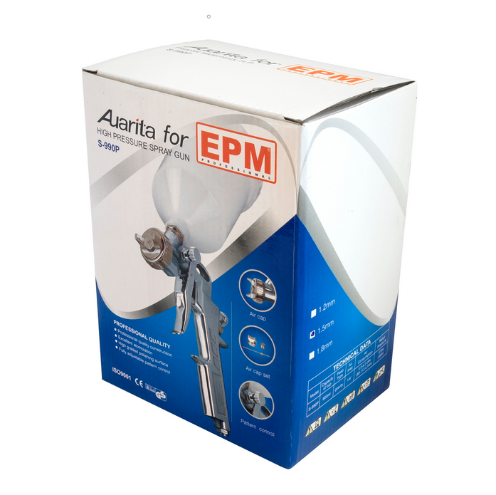 Pistolet lakierniczy EPM E-490-0204 HP ze zbiornikiem do narzędzie do wydajnego lakierowania. Pistolet natryskowy EPM E-490-0201 wykonany w technologii HP, która charakteryzuje się pracą przy wysokim ciśnieniu, lecz zarazem mniejszym zapotrzebowaniu na sprężone powietrze. Technologia HP pozwala na generowanie mgiełki lakierniczej o dużym natężeniu, co zwiększa efektywność krycia w ciasnych przestrzeniach lecz przekłada się na większe straty materiału i większą emisję lotnych związków. Pistolet do lakierowania EPM E-490-0204 został wyposażony w zbiornik o pojemności 600ml i dyszę o średnicy 1,5 mm.