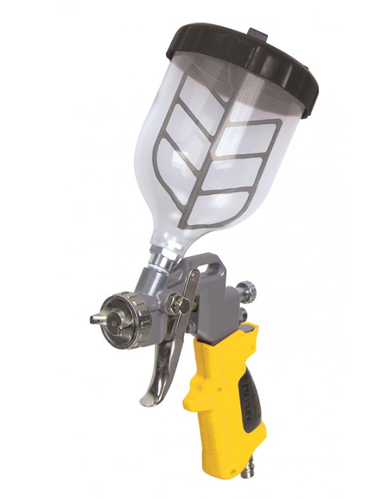 Pistolet lakierniczy HP Stanley 160132XSTN617 ze zbiornikiem górnym do narzędzie do wydajnego lakierowania. Pistolet natryskowy Stanley 160132XSTN617 wykonany w technologii HP, która charakteryzuje się pracą przy wysokim ciśnieniu, lecz zarazem mniejszym zapotrzebowaniu na sprężone powietrze. Technologia HP pozwala na generowanie mgiełki lakierniczej o dużym natężeniu, co zwiększa efektywność krycia w ciasnych przestrzeniach lecz przekłada się na większe straty materiału i większą emisję lotnych związków. Pistolet do lakierowania Stanley 160132XSTN617 został wyposażony w zbiornik z mieszadłem o pojemności 500ml i dyszę o średnicy 1,5 mm.