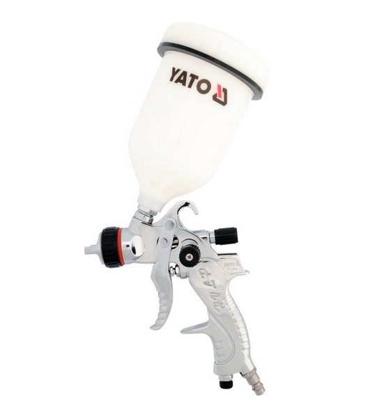 Pistolet lakierniczy HVLP Yato YT-2357  to narzędzie, które zapewnia precyzyjne i profesjonalne lakierowanie powierzchni. Pistolet natryskowy Yato YT-2357 został wykonany w technologii HVLP, która charakteryzuje się redukcją generowanej mgiełki lakierniczej, co zwiększa efektywność transferu (krycia) powierzchni aplikowaną farbą i ogranicza emisję lotnych związków. Dzięki temu, możesz zaoszczędzić na zużyciu farby, co ma znaczenie ekonomiczne i ekologiczne. Pistolet do lakierowania HVLP Yato YT-2357 posiada zbiornik o pojemności 100 cm3, co pozwala na dłuższe malowanie bez konieczności częstego uzupełniania farby oraz dyszę o średnicy 0,8 mm. Pistolet lakierniczy ze zbiornikiem HVLP Yato YT-2357 jest solidnie wykonany i wygodny w użytkowaniu, a jego waga (bez farby) wynosi 345 g, co sprawia, że jest łatwy do obsługi i nie męczy dłoni podczas długotrwałego malowania.
