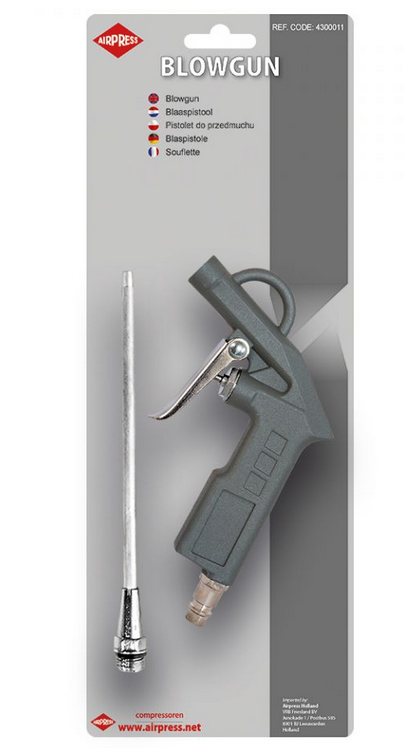 Pistolet do przedmuchu Airpress 4300011 to narzędzie do zdmuchiwania zanieczyszczeń lotnych tj. kurzu oraz pyłów z dekorowanych lub odnawianych powierzchni. Pneumatyczny pistolet do przedmuchiwania Airpress 4300011 można także zastosować do usuwania wiórów podczas obróbki drewna lub metalu. Posiada poręczny uchwyt, co zwiększa komfort pracy oraz długą (10cm) i zarazem wydajną dyszę.