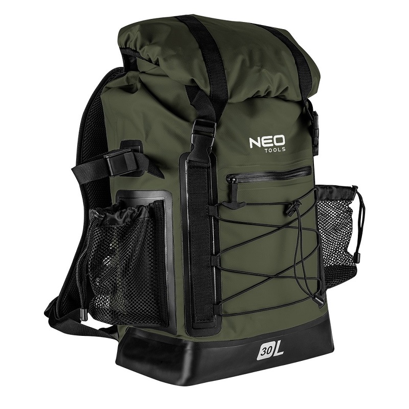 Plecak wodoodporny NEO (nr ref. 63-131) o pojemności 30L wykonany jest wodoodpornego materiału, zapewniając skuteczną ochronę przedmiotów znajdujących się wewnątrz podczas niesprzyjającej pogody. Regulowane pasy oraz zastosowanie pasów piersiowego i biodrowego zapewnią dobre umocowanie. Poduszki na plecach zwiększają komfort w trakcie użytkowania. Plecak posiada 1 kieszeń główną, 1 kieszeń zewnętrzna na suwak oraz 2 boczne kieszenie siatkowe.