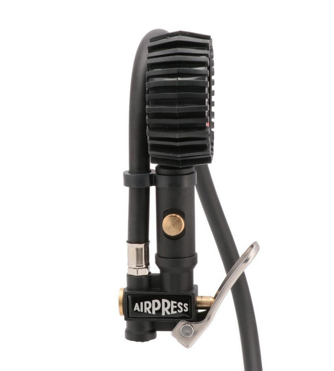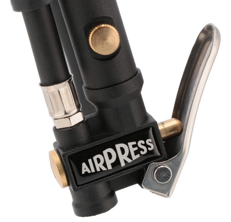 Pneumatyczny pistolet do pompowania Airpress 42064 to narzędzie do precyzyjnego pompowania kół samochodowych, motocyklowych, rowerowych i innych zasilany sprężonym powietrzem z sieci lub z bezpośrednio kompresora. Pistolet do pompowania Airpress 42064 został wyposażony w manometr z cyfrowym wyświetlaczem, umożliwiający kontrolowanie ciśnienia w czasie pracy oraz wężyk o długości 60 cm. Pistolet można także wykorzystać do pompowania innego sprzętu poprzez zastosowanie odpowiedniego adaptera będącego w zestawie. Wygodny przycisk do opuszczania ciśnienia.