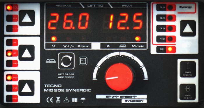 TECNOMIG 202 SYNERGIC jest inwertorowym synergicznym półautomatem spawalniczym przeznaczonym do spawania łukowego metodą MIG/MAG, TIG LIFT, MMA oraz FLUX. Urządzenie zostało zaprojetowane do szerokiego zakresu zastosowań: od prac konserwacyjnych do napraw nadwozi samochodowych.