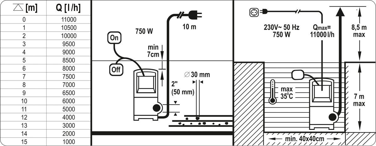 POMPA ZATAPIALNA WQ 15-7-1,1 230V Z NASADĄ