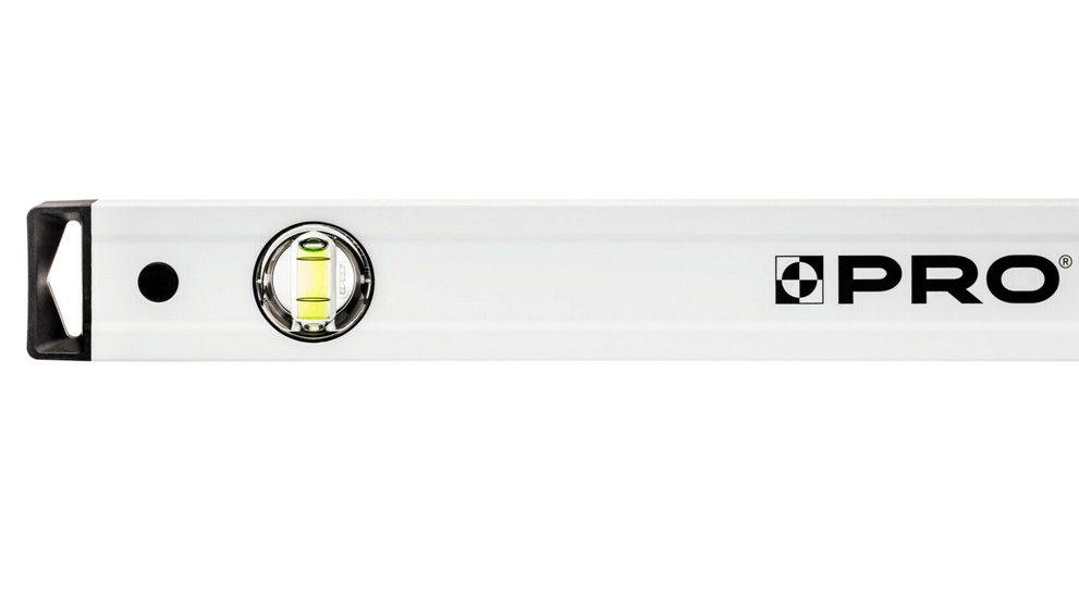 Poziomica aluminiowa PRO600 Pro 3-01-01-AB-100 to precyzyjne narzędzie do wykonywania pomiaru poziomu lub pionu. Narzędzie 3-01-01-AB-100 wykonano z wytrzymałego lakierowanego na biało profilu aluminiowego o wysokiej twardości powierzchniowej z przetłoczeniem o długości 100 cm. Poziomica PRO600 3-01-01-AB-100 pozwala na pomiar z dokładnością ± 0,5 mm/m, a system budowy libelli ERS+ powiększający obraz ułatwia odczyt. Poziomica 3-01-01-AB-100 wyposażona w dwie libelle, pierścienie dodatkowe umożliwiające wyznaczenie 2% spadku oraz końcowe nasadki z wytrzymałego elastomeru (ANTI SHOCK CAP).