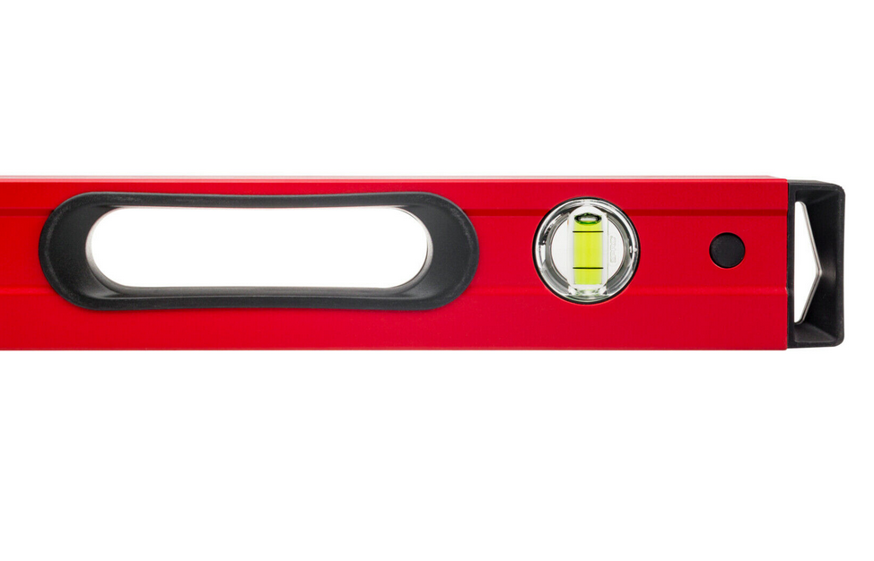 Poziomica PRO800 Pro 3-01-01-BE-120 to profesjonalne narzędzie do pomiaru poziomu lub pionu. Narzędzie 3-01-01-BE-120 wykonano z wytrzymałego profilu aluminiowego lakierowanego na czerwono o wysokiej twardości powierzchniowej z przetłoczeniem o długości 120 cm. Poziomica PRO600 Pro 3-01-01-BE-120 pozwala na pomiar z dokładnością ± 0,5 mm/m, a system budowy libelli ERS+ powiększający obraz ułatwia odczyt. Poziomica Pro 3-01-01-BE-120 wyposażona w trzy libelle wykonane z wysokiej jakości szkła akrylowego, poziomą umożliwiającą odczyt w położeniu normalnym i odwrotnym oraz pionowe, poręczne uchwyty, a także końcowe nasadki z wytrzymałego elastomeru (ANTI SHOCK CAP).