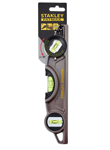 Poziomica czółenkowa Torpedo XL Stanley Fatmax 0-43-609 to narzędzie do pomiaru poziomu, pionu i skosu pod kątem. Poziomica posiada odlewany aluminiowy korpus, w którym wbudowano 3 libelle: pozioma, pionowa i obrotowa. Poziomica magnetyczna Torpedo XL Stanley Fatmax 0-43-609 ma długość 25 cm. Spód narzędzia posiada rowek V do pomiaru na zaokrąglonych powierzchniach oraz wbudowany magnes.
